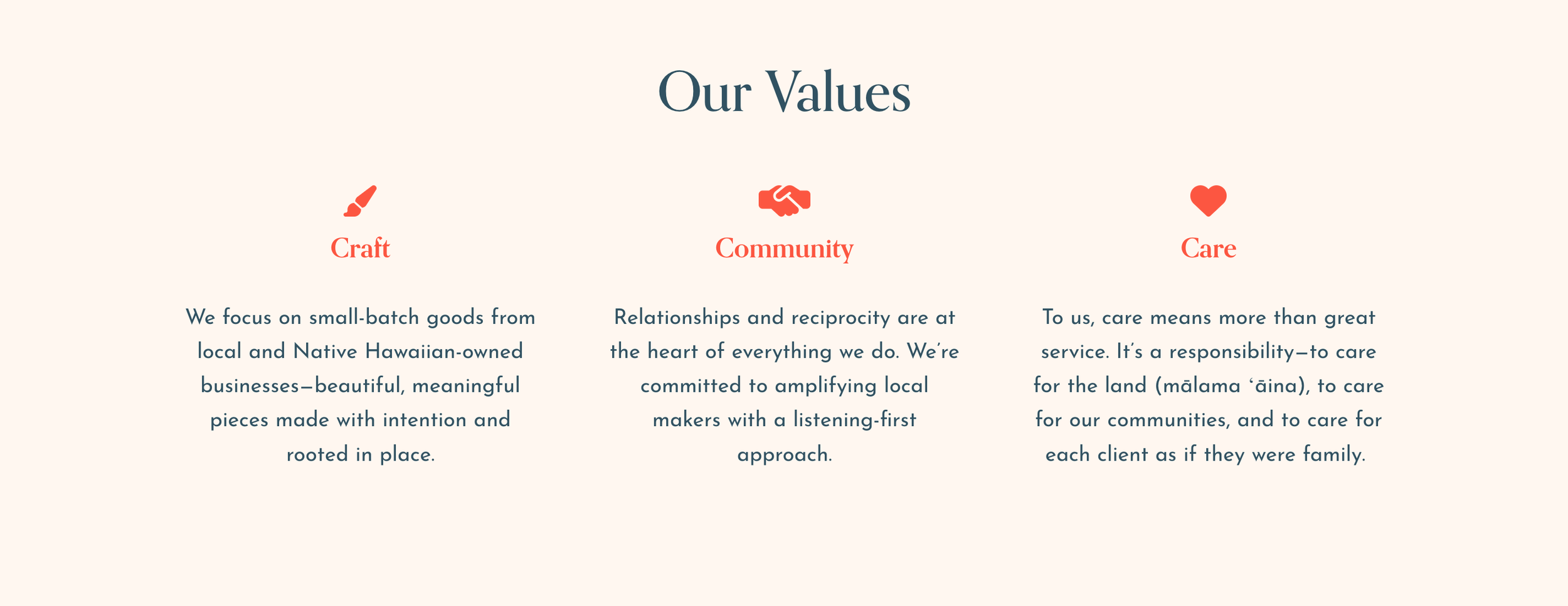 Lehua Lane is all about fostering meaningful connections through thoughtful, personalized gifts—so it was important for the About page to communicate our personality, values, and passion.